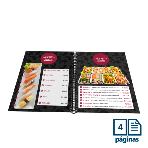 Cardápio Plástico PVC Médio | 21,5x29cm | Gráfica Cores